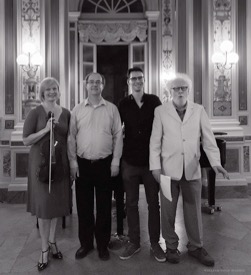 Adele Govier (vla), Fergal Caulfield (pno), composer Chris Corcoran and composer Frank Corcoran at the premiere of Deep Blue Windows.